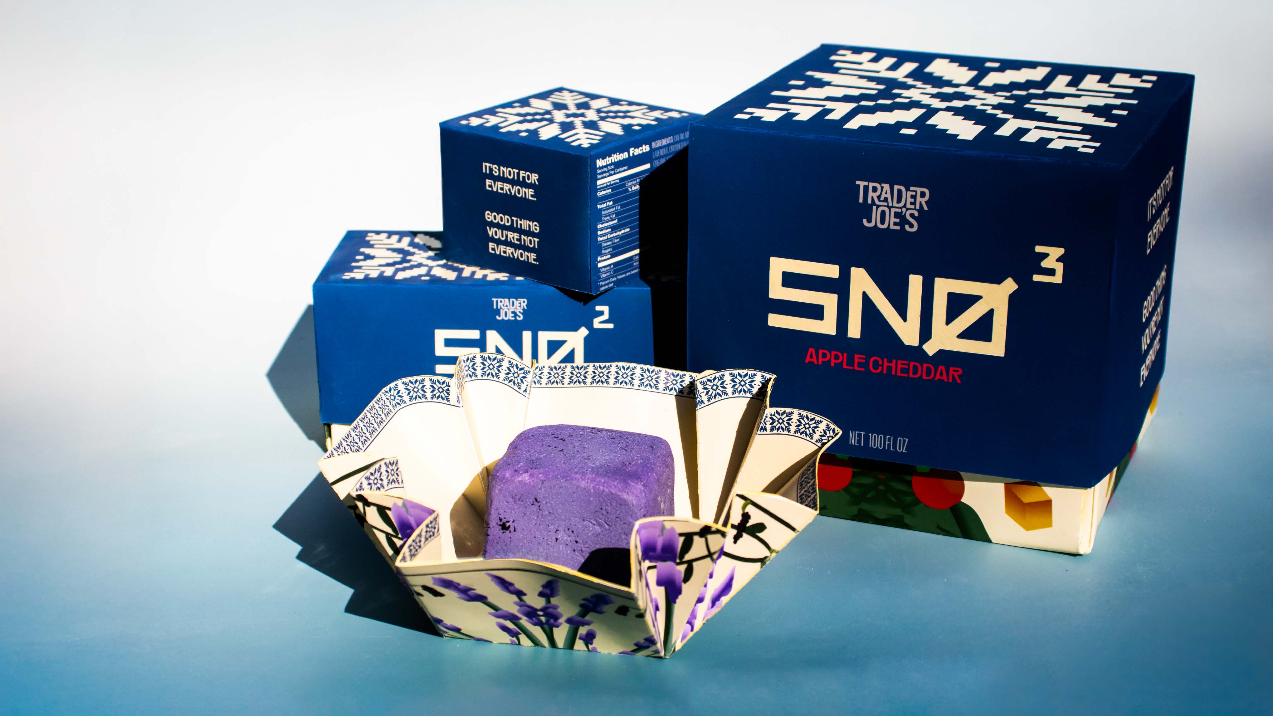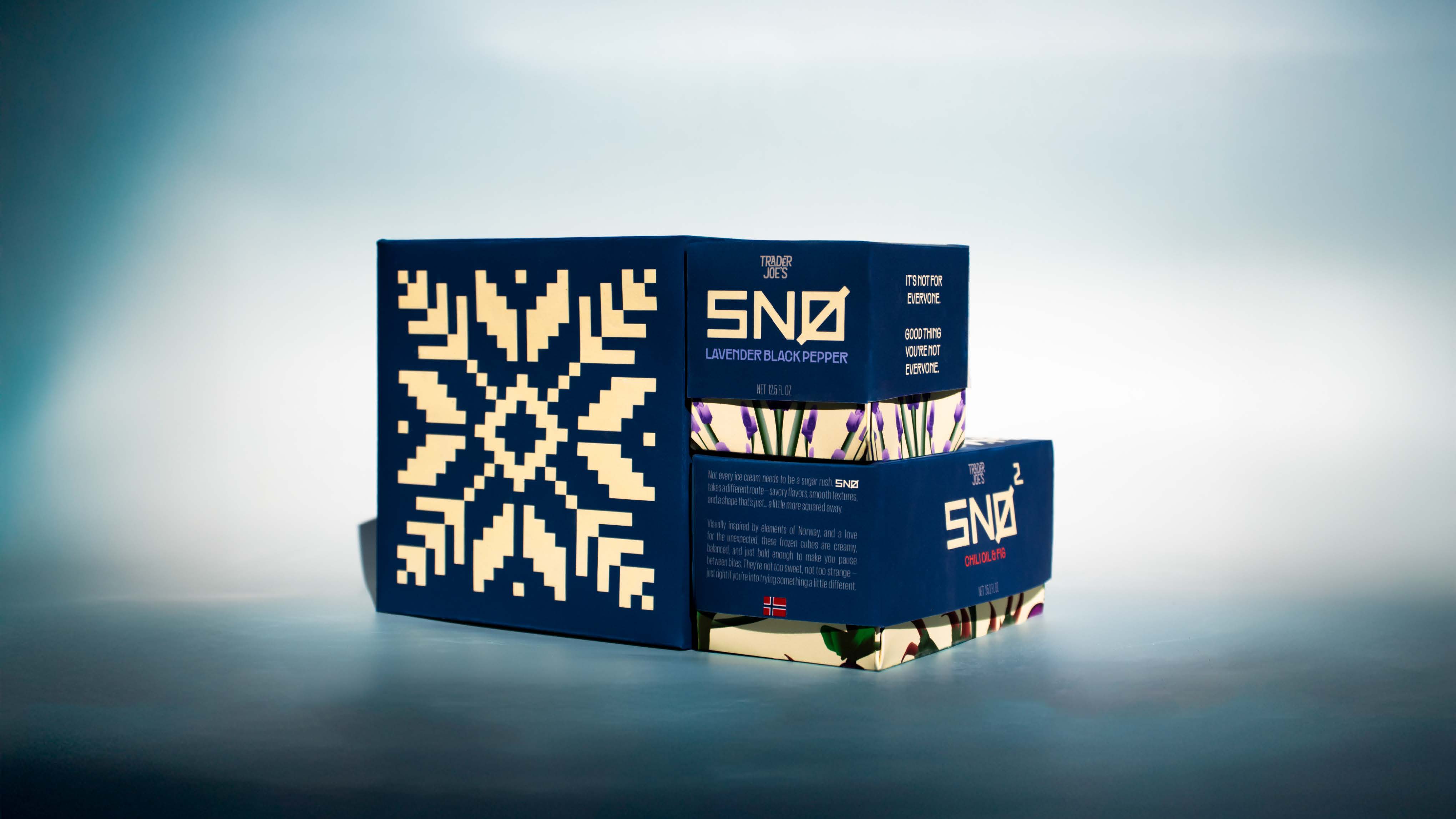 SNØ is a new, gourmet savory ice cream line designed for Trader Joe's, tapping into a market not commonly explored.