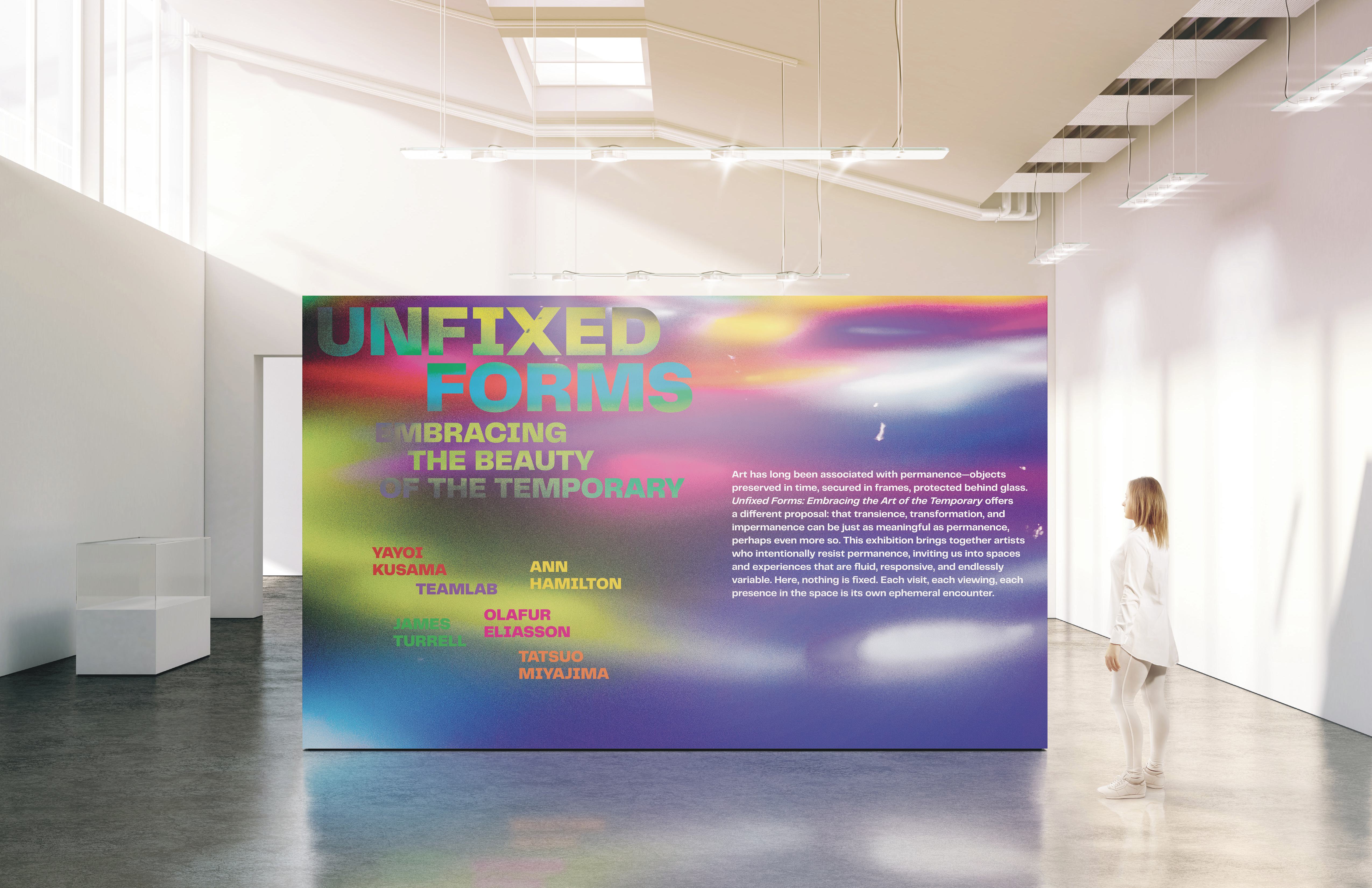 Unfixed Forms: Embracing The Beauty Of The Temporary is an exhibition catalog for LACMA. The exhibit focuses on art pieces that would never be the same on multiple viewings.